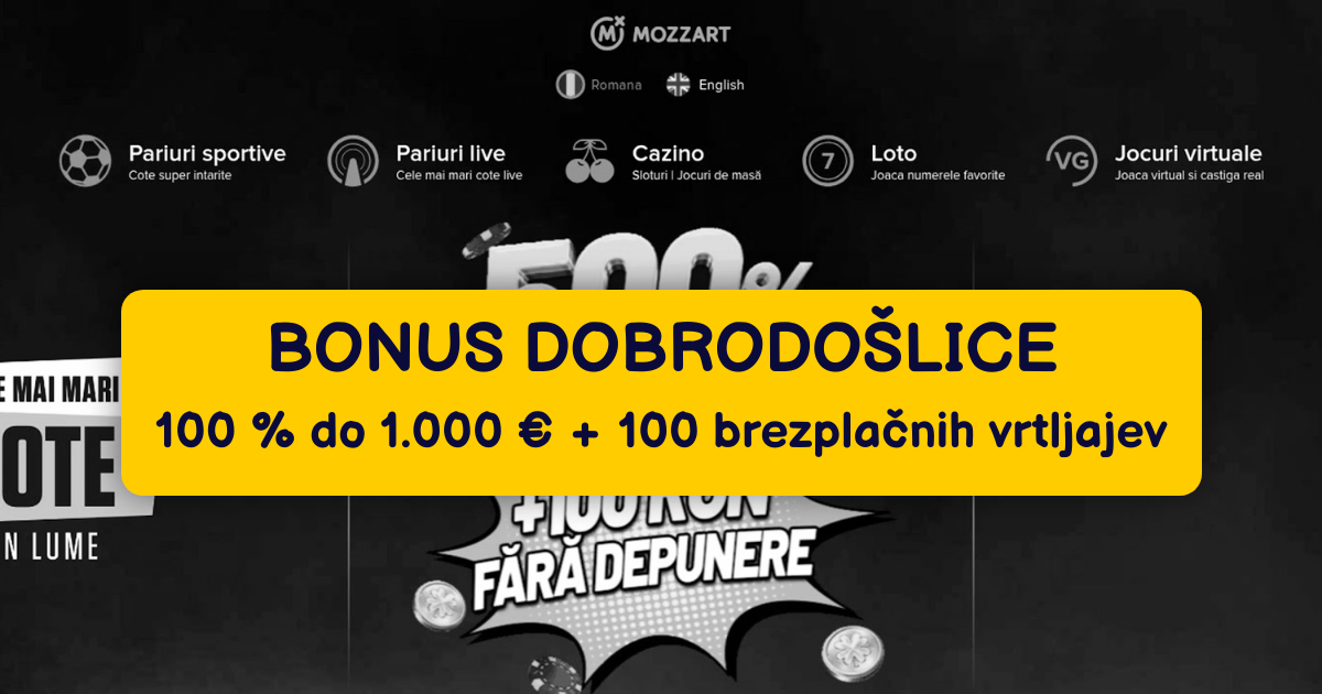 Mozzart Casino este cunoscut pentru mixul între bonusuri fără depunere și oferte de bun-venit cu procente mari. Important: valorile și codurile promo pot fi actualizate periodic: jucătorii începători ar trebui să compare mereu termenii publici înainte de activare.